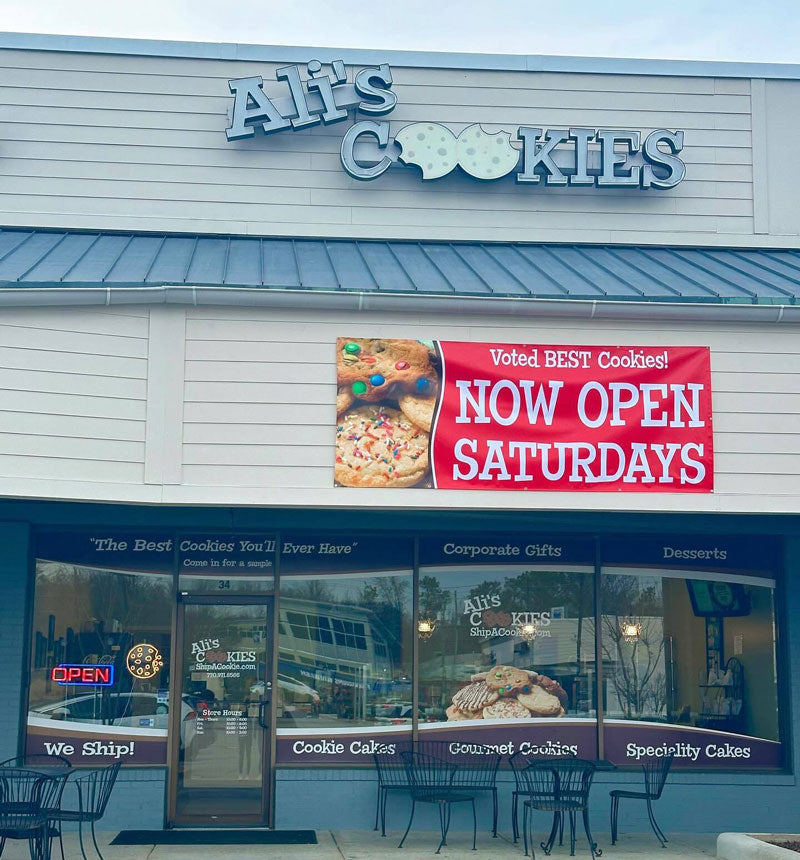 Ali’s Cookies was founded locally, so we care about delivering the best chocolate chip cookies in East Cobb to you. We haven’t just mastered the art of baking the perfect cookie - we have the logistics down pat. Ali’s offers same-day and next-day delivery on our cookie treats. Because we ship all over the country, we ship anywhere locally. You’ll never have to wonder if your recipient is in an arbitrary delivery zone when you order him or her a scrumptious batch of cookies or a cookie cake that’s almost too good to share. We make it simple - you order the cookies, they enjoy the cookies! What are you waiting for? Order from Ali’s Cookies and take advantage of fast delivery in Cobb County today!